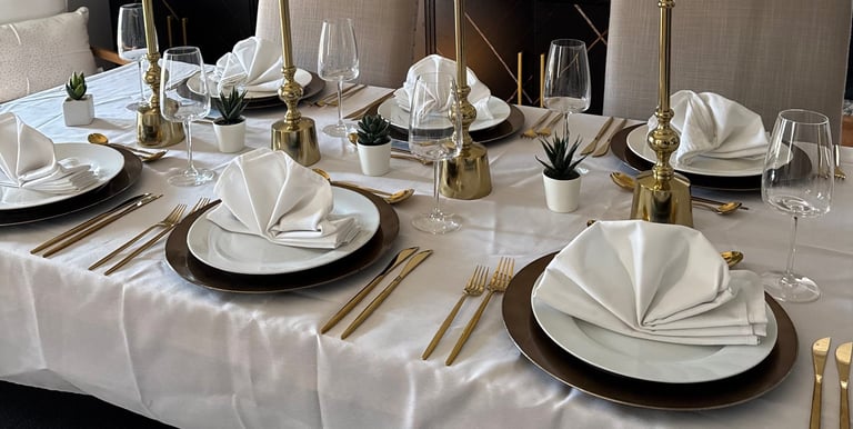 At Fork & Fancy, every tables cape is crafted with intention and a touch of global artistry. Whether you're hosting an intimate dinner at home or celebrating a milestone event at a venue, we bring design, emotion and effortless beauty to your table.