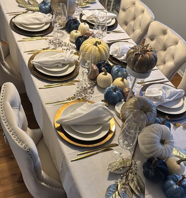 experience. Based in Chicago and inspired by global aesthetics with a uniquely South African flavor, we design tablescapes that transform gatherings of every size into unforgettable moments. From intimate Thanksgiving dinners in your home to large-scale celebrations at venues and weddings, our team handles everything from design to delivery and full setup. Each tablescape is curated with intention, blending texture, color, and storytelling to create an atmosphere that evokes emotion, sparks joy, and becomes part of your most cherished memories.